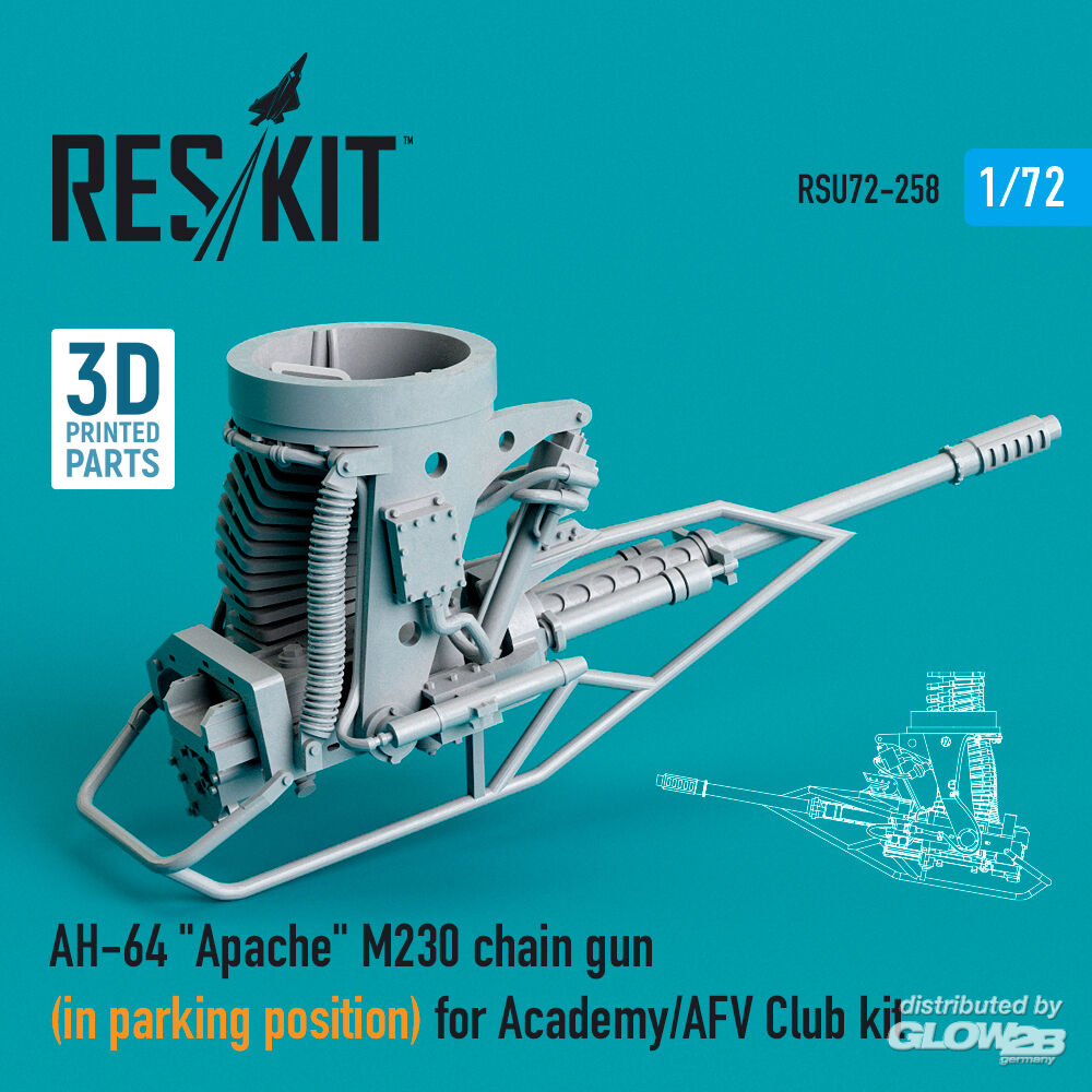 RESKIT Models: AH-64 Apache M230 chain gun (in parking position) for Academy / AFV Club kit (3D Printed) in 1:72 [4595202580]