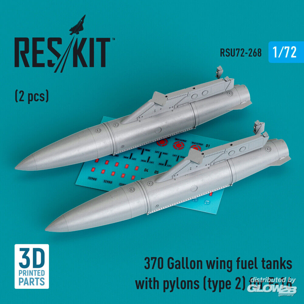 RESKIT Models: 370 Gallon wing fuel tanks with pylons (type 2) for F-16 (A/B/C/D/E/F/I) (2 pcs) (3D Printed) in 1:72 [4595202689]
