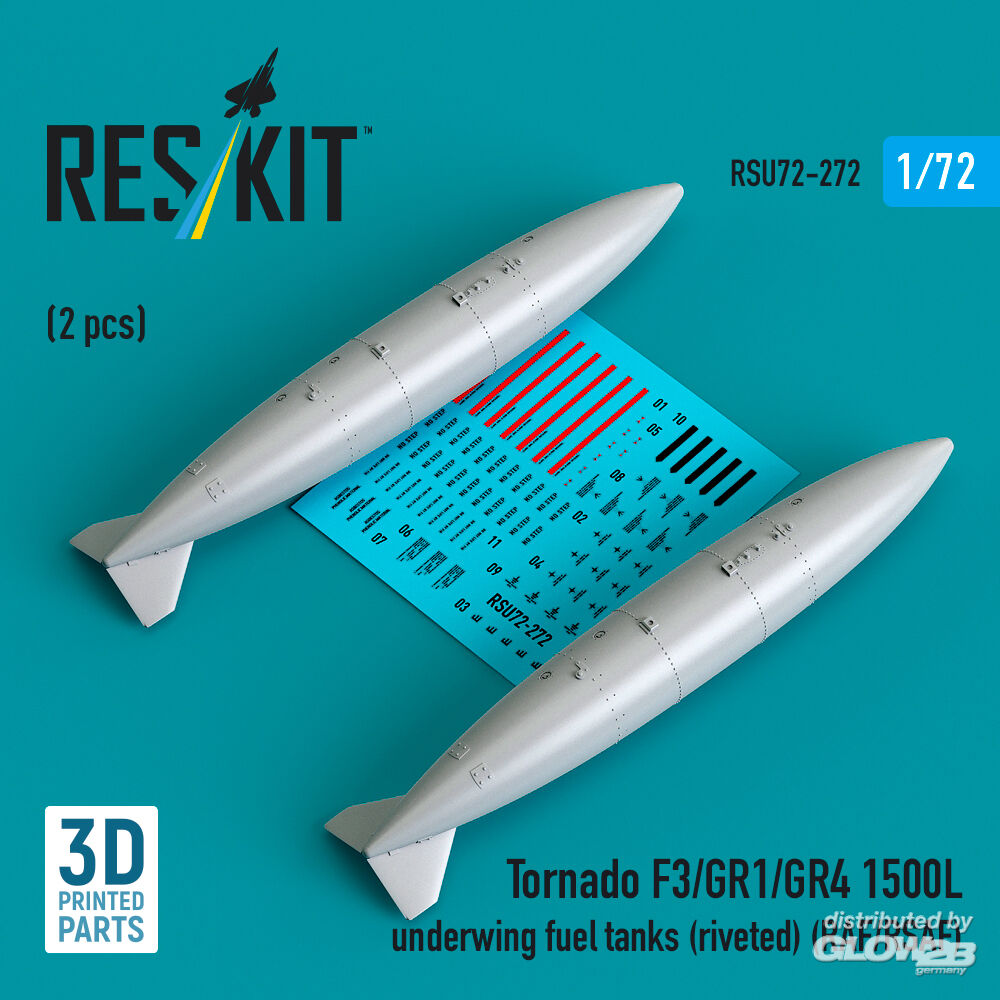 RESKIT Models: Tornado F3/GR1/GR4 1500L underwing fuel tanks (riveted) (RAF/RSAF) (2 pcs) (3D Printed) in 1:72 [4595202726]