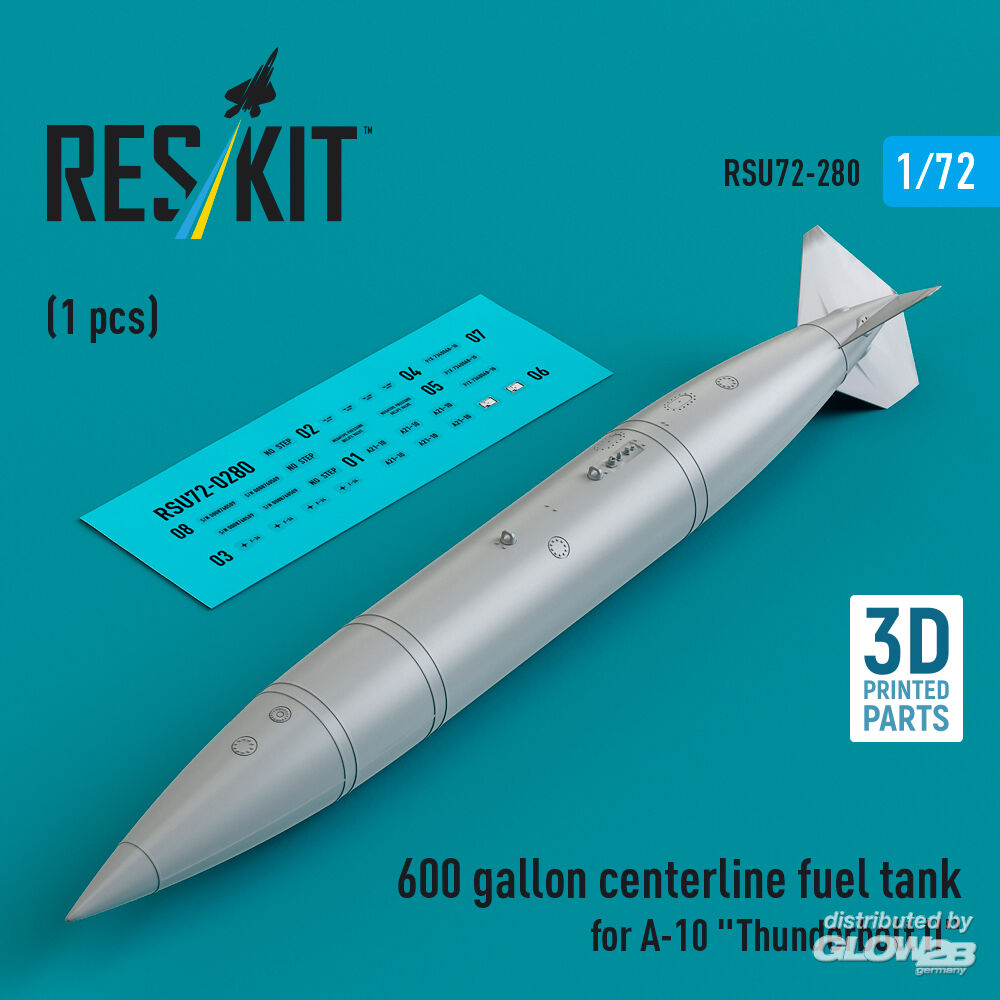 RESKIT Models: 600 gallon centerline fuel tank for A-10 Thunderbolt II (1 pcs) (3D Printed) in 1:72 [4595202801]