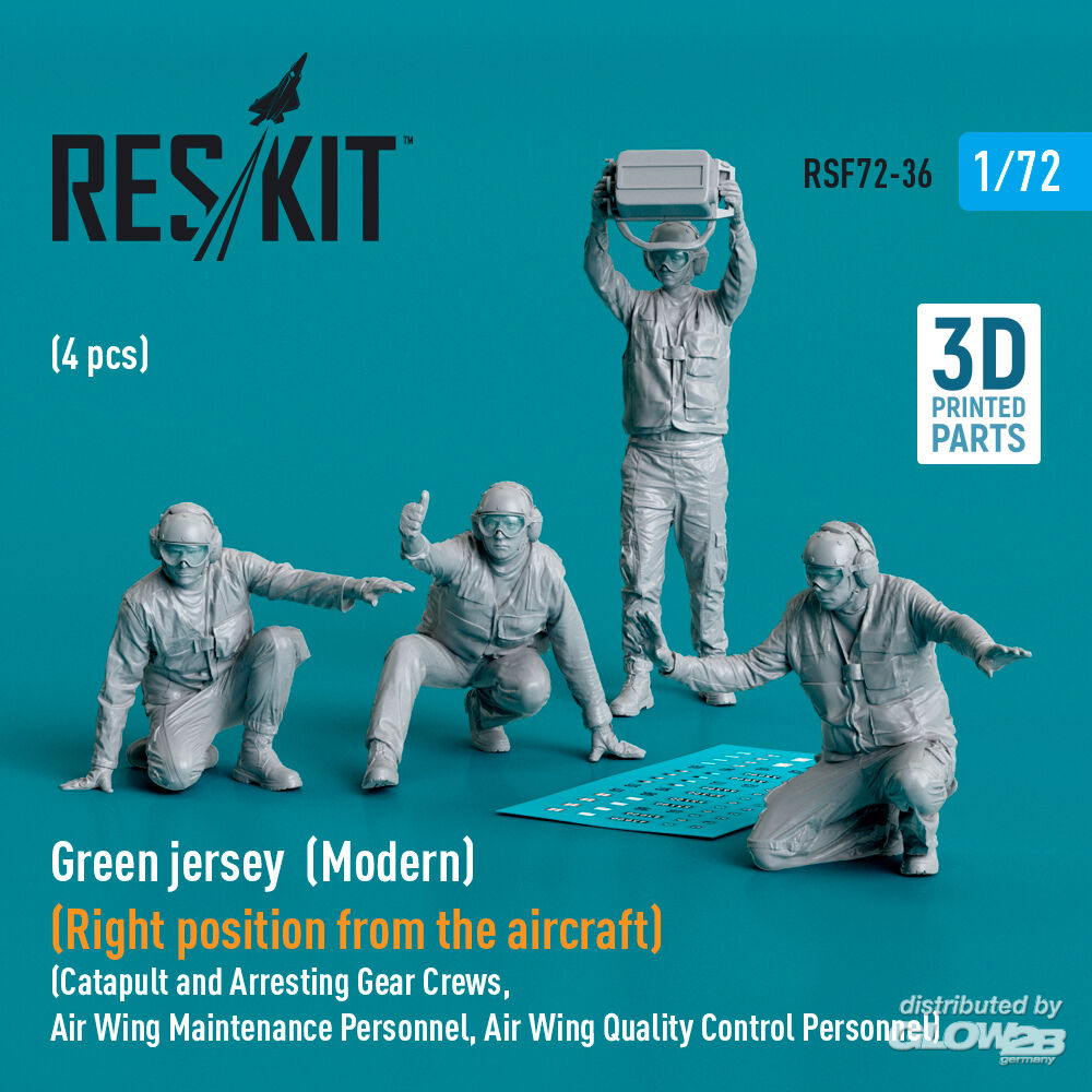 RESKIT Models: Green jersey (Modern) (Right position from the aircraft) Catapult and Arresting Gear Crews, Air Wing Maintenance Personnel, Air Wing Quality Control Personnel (4 pcs) (3D Printed) in 1:72 [4595400368]