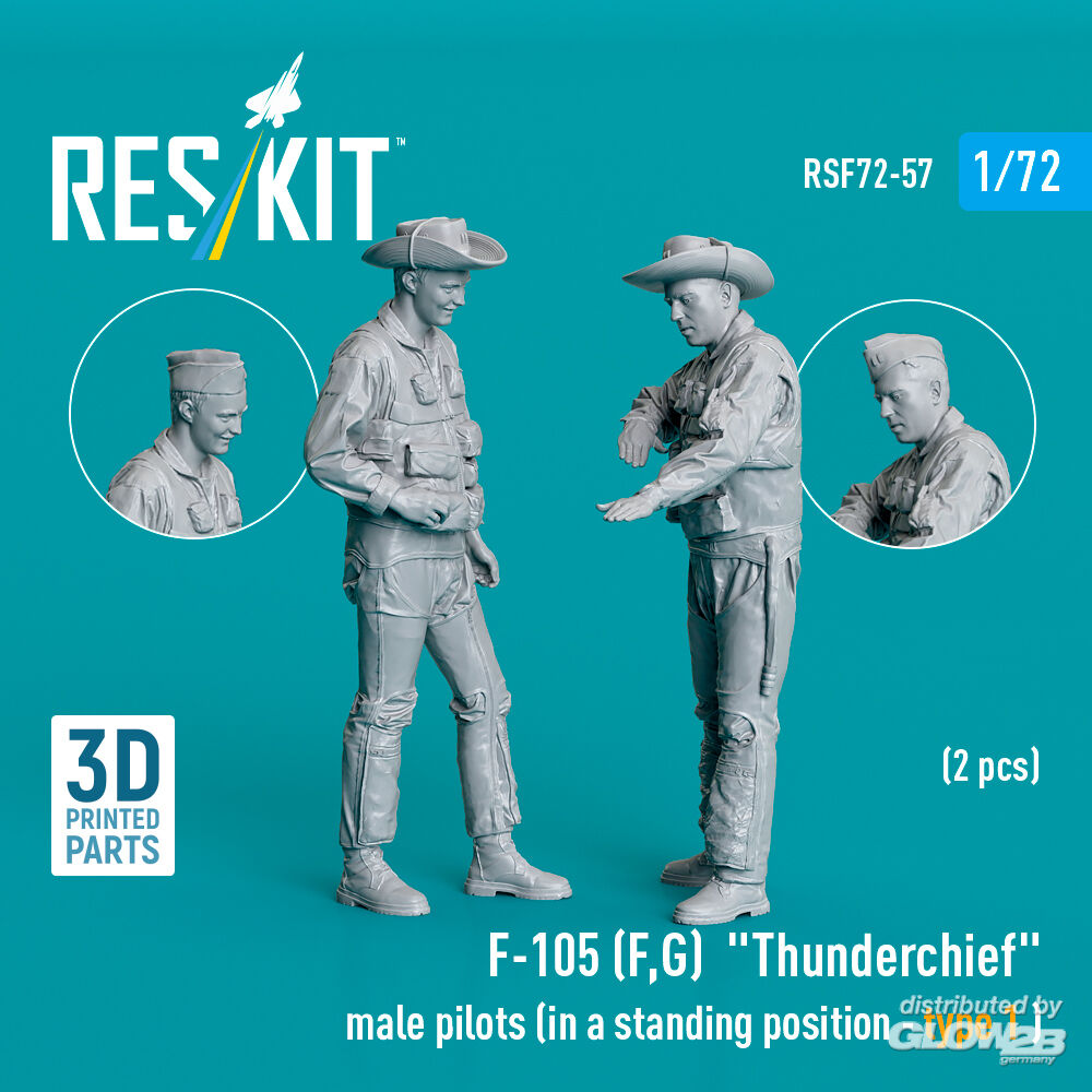 RESKIT Models: F-105 (F, G) Thunderchief male pilots (in a standing position - type 1 ) (2 pcs) (3D Printed) in 1:72 [4595400573]