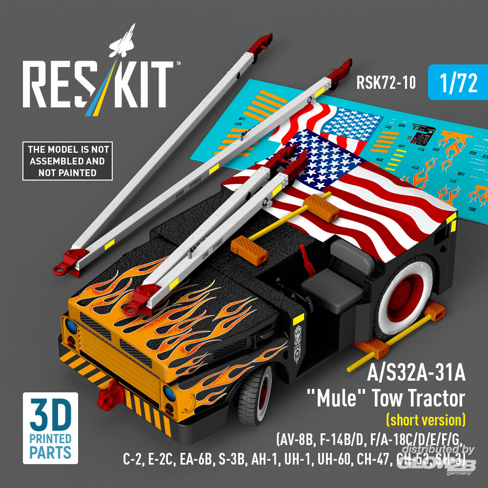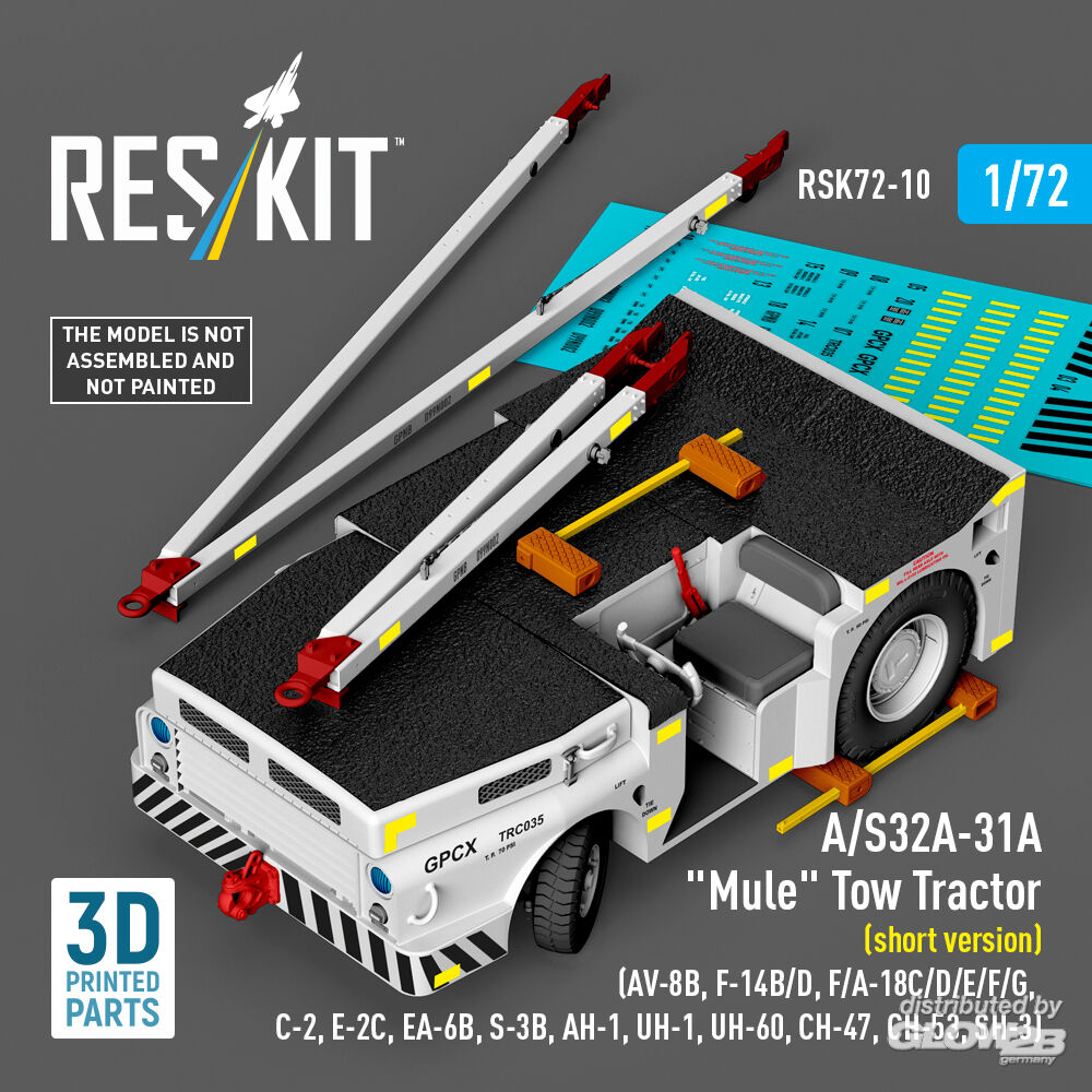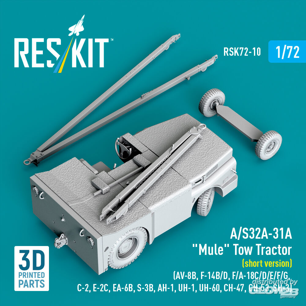 RESKIT Models: A/S32A-31A Mule Tow Tractor (short version) (AV-8B, F-14B/D, F/A-18C/D/E/F/G, C-2, E-2?, EA-6B, S-3B, AH-1, UH-1, UH-60, CH-47, CH-53, SH-3) (3D Printed model kit) in 1:72 [4595700109]