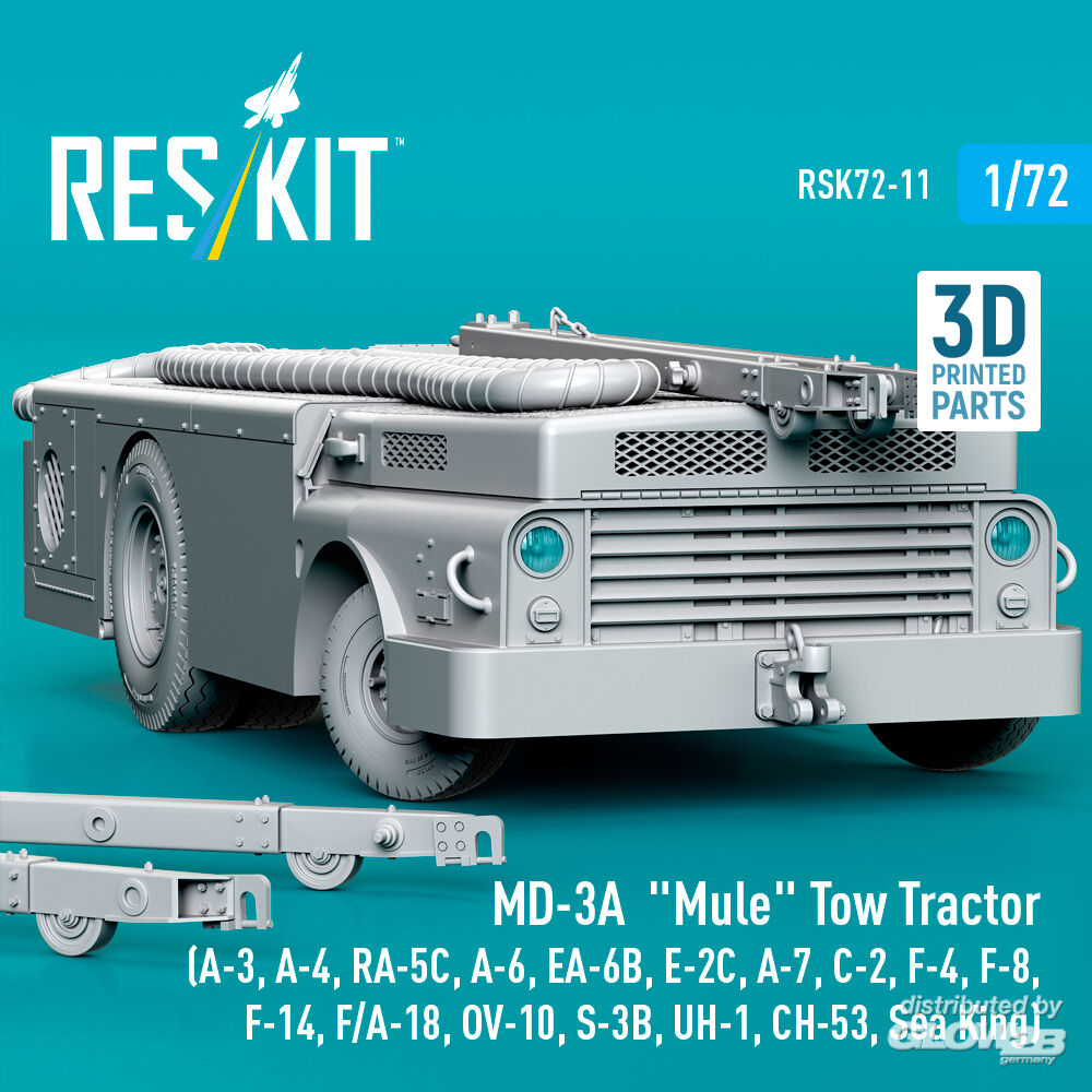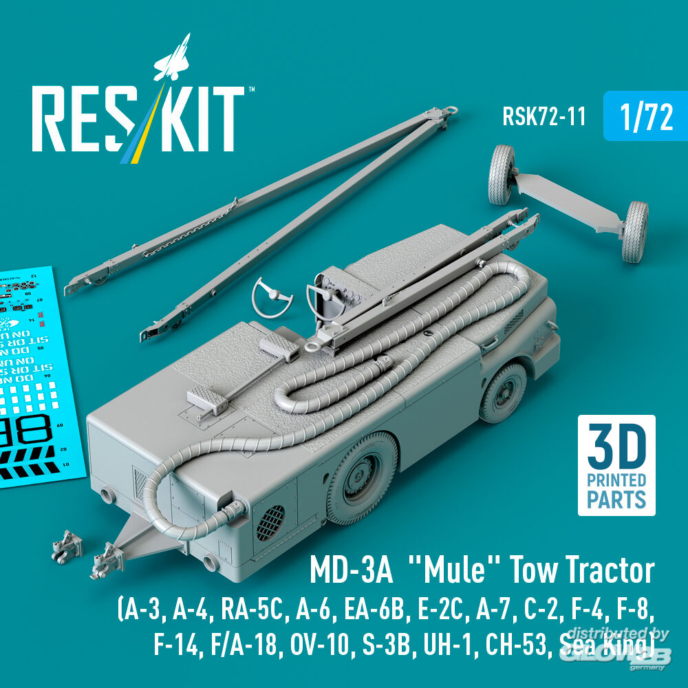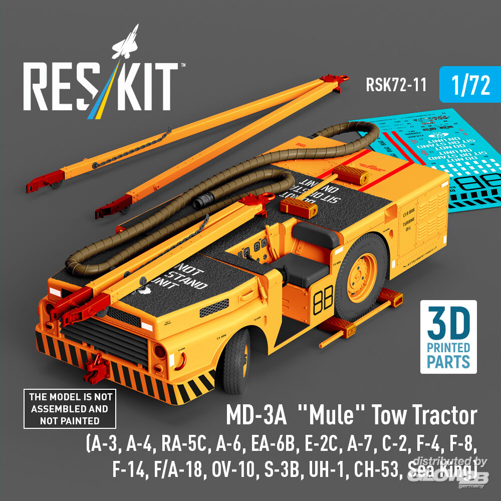 RESKIT Models: MD-3A Mule Tow Tractor (A-3, A-4, RA-5C, A-6, EA-6B, E-2C, A-7, C-2, F-4, F-8, F-14, F/A-18, OV-10, S-3B, UH-1, CH-53, Sea King) (3D Printed model kit) in 1:72 [4595700116]