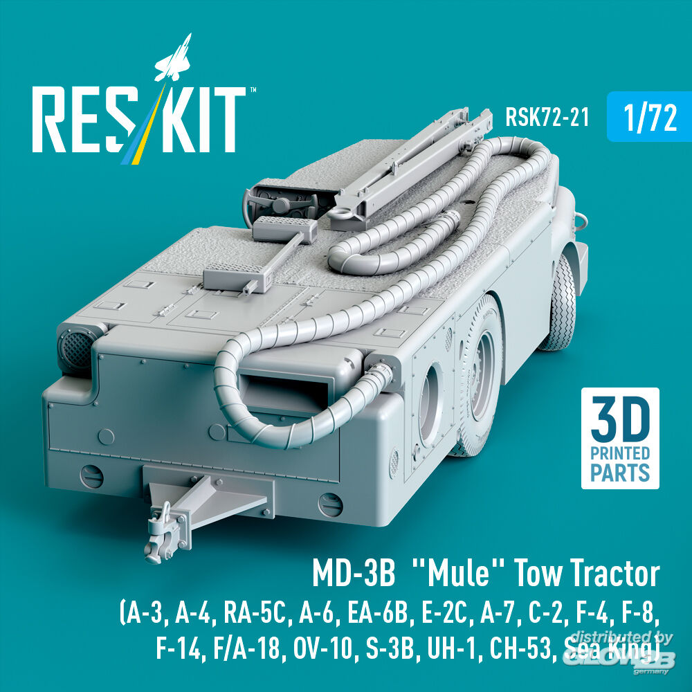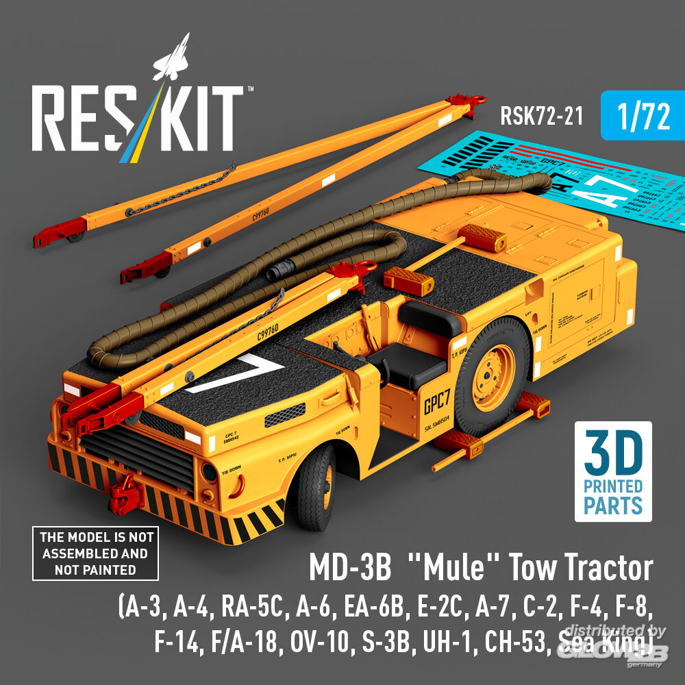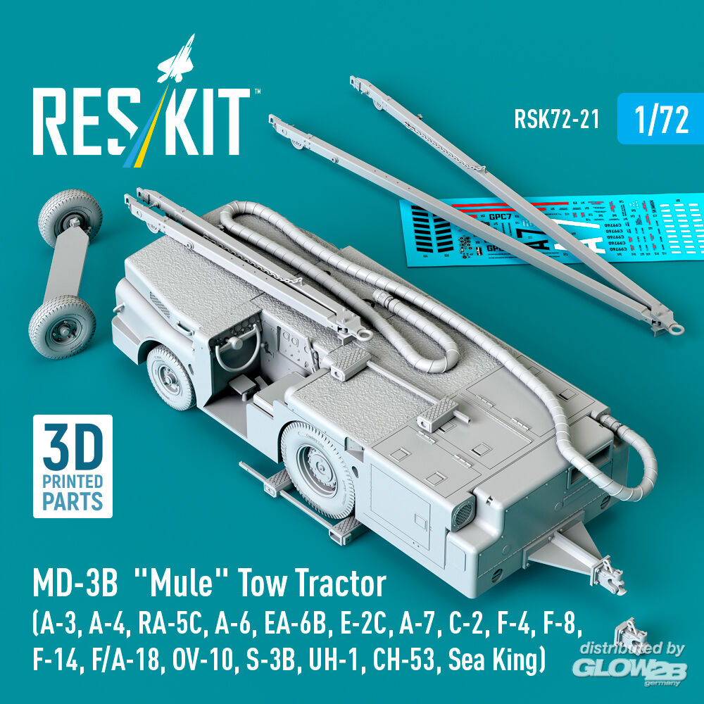 RESKIT Models: MD-3B Mule Tow Tractor (A-3, A-4, RA-5C, A-6, EA-6B, E-2C, A-7, C-2, F-4, F-8, F-14, F/A-18, OV-10, S-3B, UH-1, CH-53, Sea King) (3D Printed model kit) in 1:72 [4595700215]
