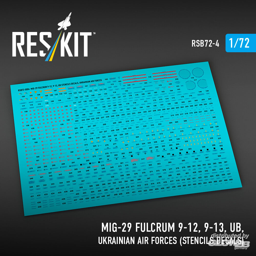 RESKIT Models: MiG-29 Fulcrum 9-12, 9-13, UB, Ukrainian Air Forces (Stencils Decals) in 1:72 [4595800045]