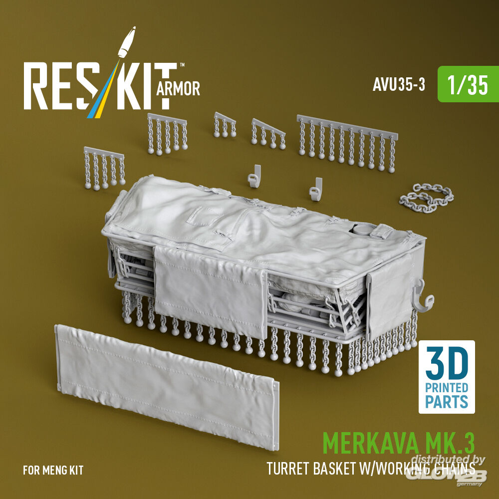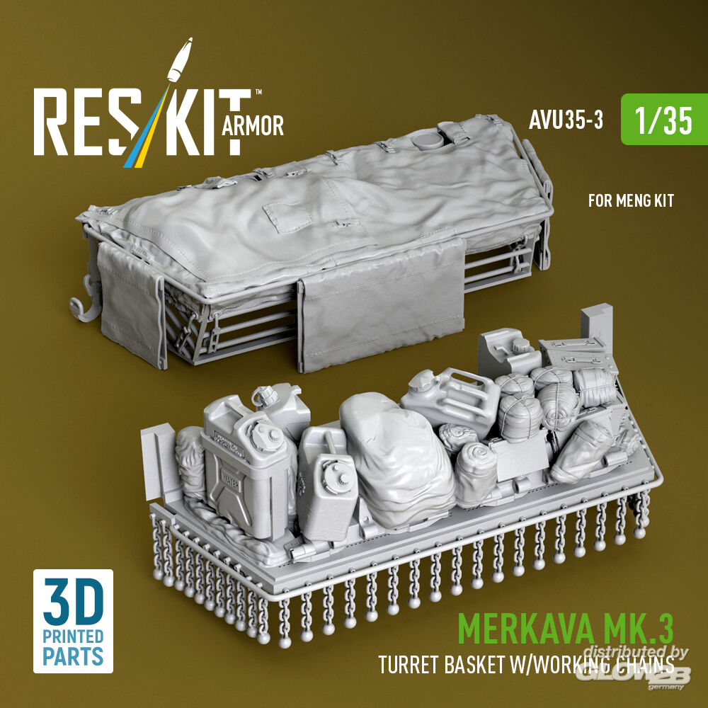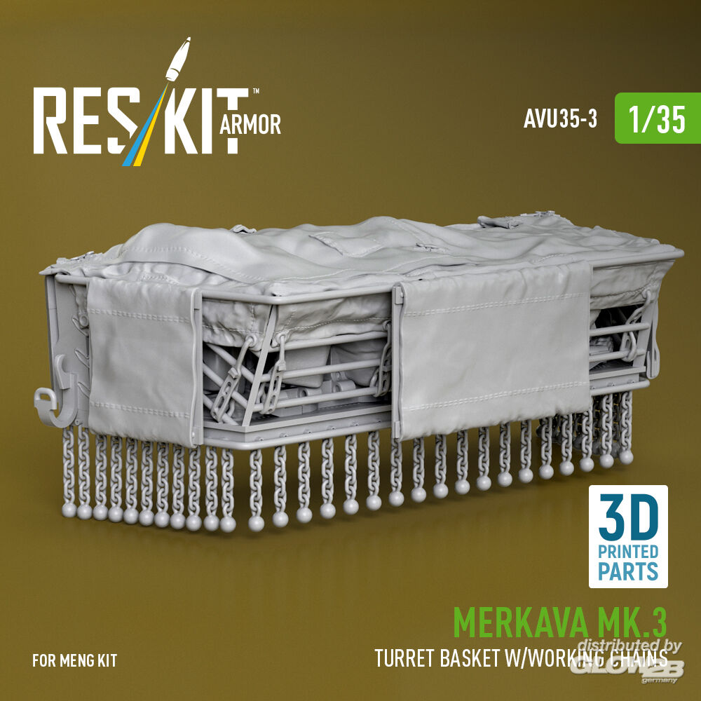 RESKIT Models: Merkava Mk.3 turret basket w/working chains for Meng kit (3D Printed) in 1:35 [4712100034]