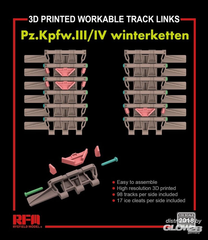 Rye Field Model: Workable track links for Pz.III/IV winterketten (3D printed ) in 1:35 [4806262081]