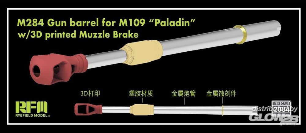 Rye Field Model: M284 Gun Barrel for M109 A7/A6 Paladin w/ 3D Printed Muzzle Brake in 1:35 [4806262202]