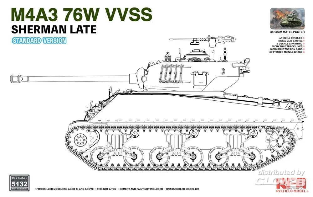 Rye Field Model: M4A3 76W VVSS Sherman Late Standard Version in 1:35 [4806262214]