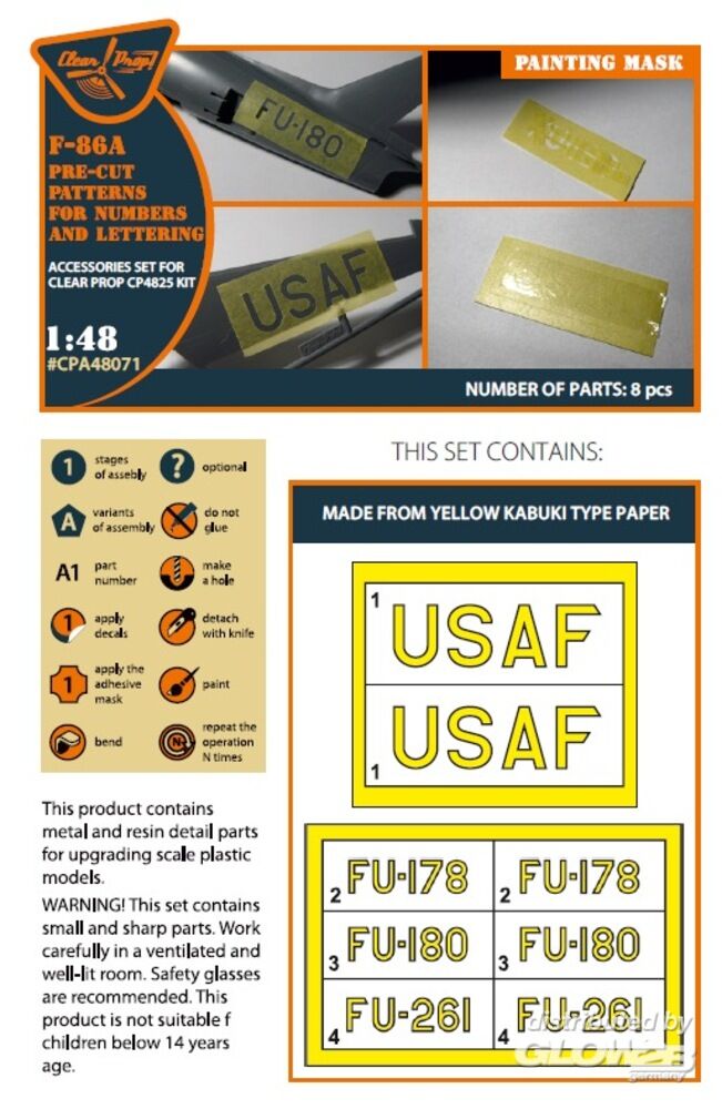 Clear Prop Accessories: F-86A pre-cut patterns for numbers and lettering painting mask for CP4825 kit in 1:48 [5072480712]