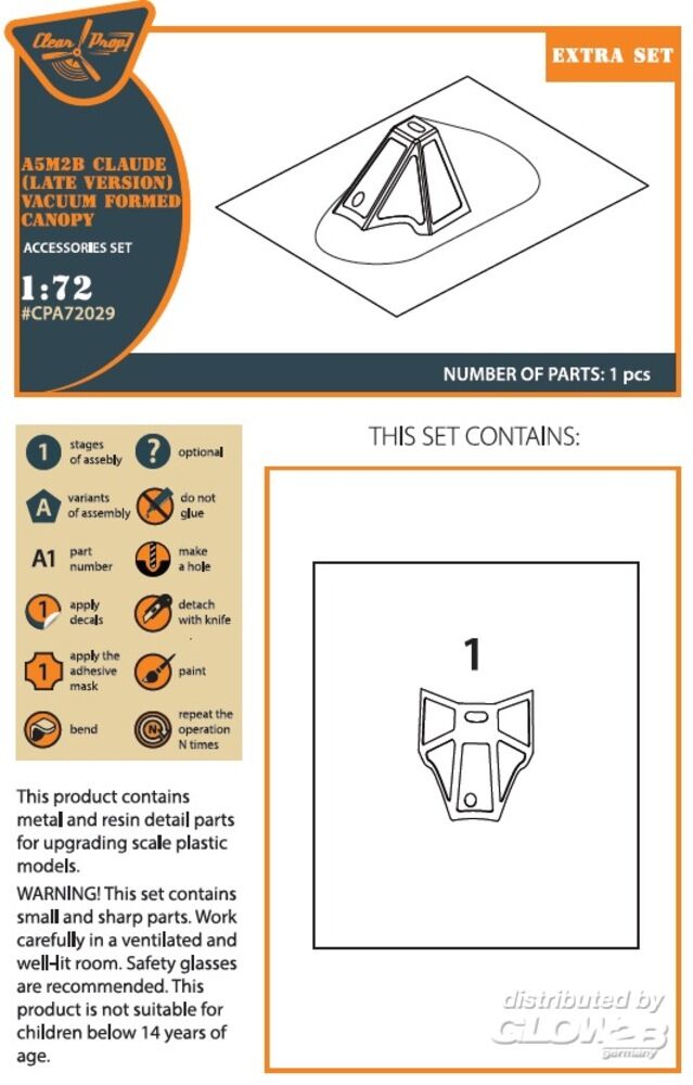 Clear Prop Accessories: A5M2b Claude (late version) vacuum formed canopy for CP kit CP72009 in 1:72 [5072720290]