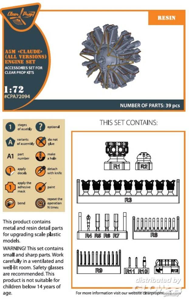 Clear Prop Accessories: A5M Claude (all versions) resin engine set for CP kits CP72006/CP72008/CP72009/CP72010 upgrated in 1:72 [5072720948]