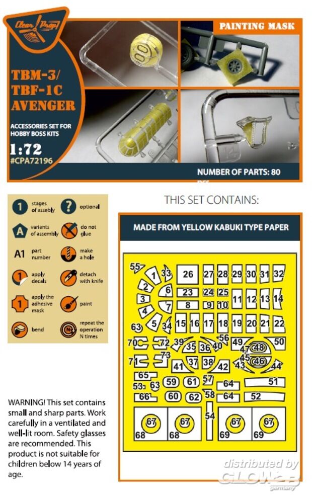 Clear Prop Accessories: TBM-3/TBF-1C Avenger painting mask for Hobby Boss kit in 1:72 [5072721969]