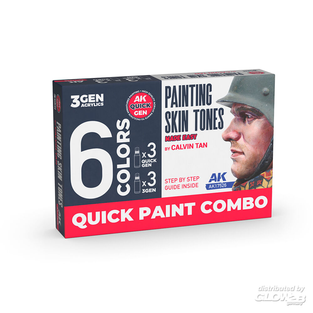 Ein schnelles und effizientes System zum Bemalen von Hauttönen! Calvin Tan hat diese Technik entwickelt, um die Vorteile beider Acrylfarbserien zu nutzen. Die Methode besteht darin, gelbasierte Farben (QUICK GEN) mit herkömmlichen Acrylfarben (3GEN) zu kombinieren und sie mit Verdünner und Ultra Mattlack zu verarbeiten. So lassen sich Gesichter oder menschliche Haut in nur wenigen einfachen Schritten schnell, effizient und mit beeindruckenden Ergebnissen bemalen. Zusatzinformationen