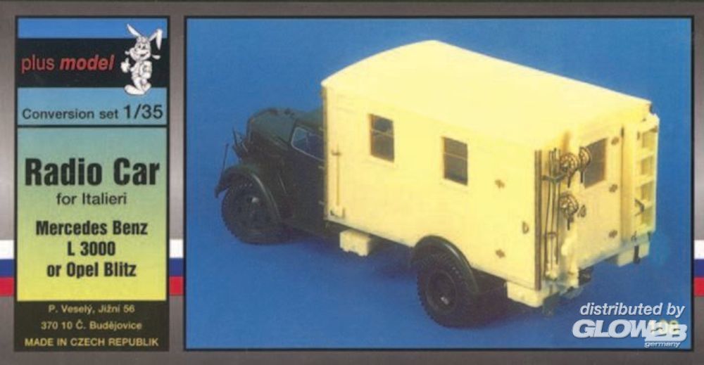 Umbauset bestehend aus 17 Resinteilen und 1 Fotoätzsatz. Kompletter Kofferaufbau mit Funkmast.
