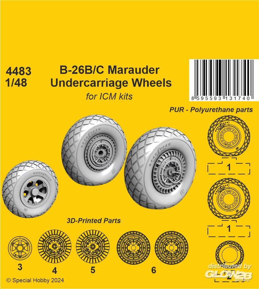 CMK: B-26B/C Marauder Undercarriage Wheels / for ICM kit in 1:48 [7244483]