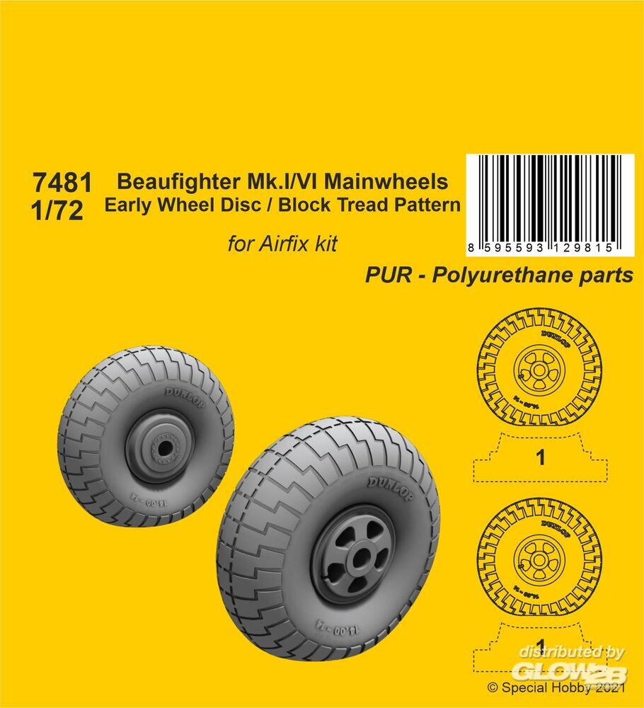 CMK: Beaufighter Mk.I/VI Mainwheels - Early Wheel Disk / Block Tread Pattern in 1:72 [7377481]