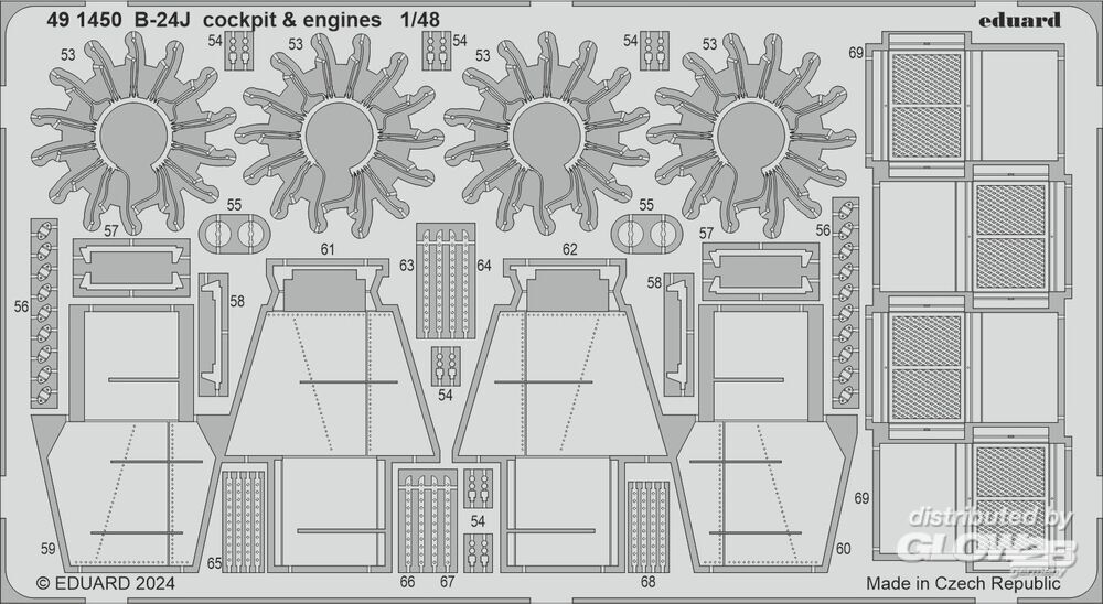 Eduard Accessories: B-24J cockpit & engines HOBBY BOSS in 1:48 [8591491450]