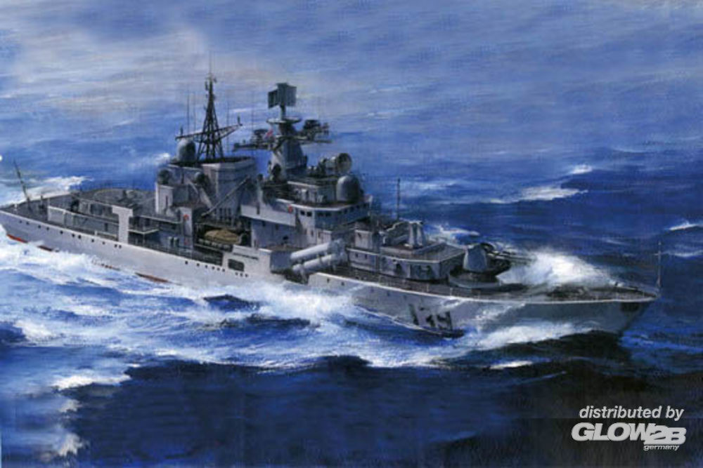 - Lower hull & upper hull made from multi-directional slide moulds. - Separate sonar due to her sphere. - Either full hull version or waterline version can be selected. - 1 sprue for Ka-27 helicopter in fine details. - Contains display stand and engraved name plate - Large size photo-etched frets for handrails etc. Zusatzinformationen