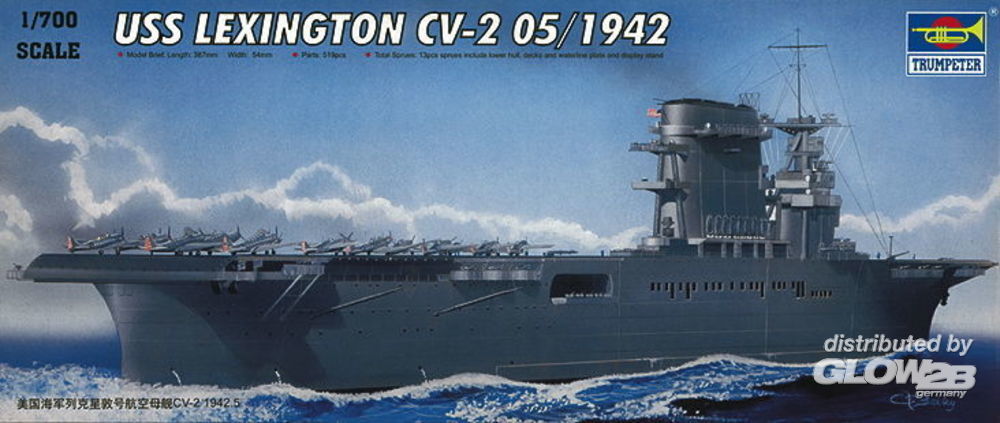 Trumpeter: USS Lexington CV-2 05/1942 mit Flugzeugen und Wasserfläche!!!! in 1:700 [9365716]