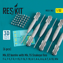 RESKIT Models: Mk.82 bombs (6 pcs) (F-4, F-5, F-8, F-15, F-16, F-18, A-1, A-4, A-6, A-7, A-10, Kfir) (3D Printed) in 1:32 [4593103421]
