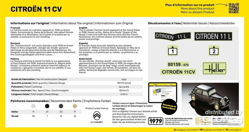 Die „Traction Avant“ mit sechs Zylindern wird 1938 im Grand Palais in Paris vorgestellt. „Königin der Straße“ genannt, überzeugt sie die deutsche Armee und die Résistance, die Gangster und die Polizei gleichermaßen durch ihre Robustheit , ihre Leistungsfähigkeit und ihren Luxus. Zusatzinformationen