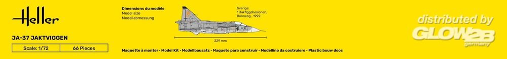 Der Prototyp der Jaktviggen machte seinen Erstflug am 8. Februar 1967. Fünf Versionen waren in der schwedischen Luftwaffe im Einsatz: AJ 37 ständige Einsatzbereitschaft / SK 37 zweisitzige Trainingsflugmaschine / SF 37 Aufklarungsfotografien / SH 37 ständige Seeüberwachung / JA 37 modifizierte Version. Das Modell, das hier vorgestellt wird, ist ausgestattet mit einem Düsenantrieb RM8B mit Nachbrenner, einem Radar-Doppler und vier ferngelenkten Sidewinder Raketen. Zusatzinformationen