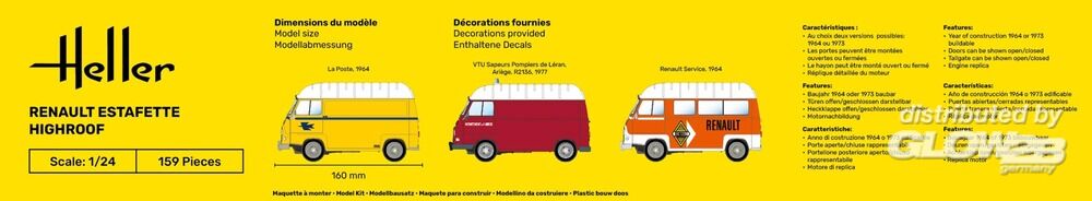 Die französischen Konkurrenten waren zu dieser Zeit der Peugeot D3A/D4B und der Citroën Typ H (Ref. Heller 80768). In Deutschland bot VW den Bus mit Heckmotor an. Bei Ford gab es den Taunus-Transit mit einer der Estafette sehr ähnlichen Ästhetik, mit Frontmotor und Hinterradantrieb. Die Estafette basierte auf dem Frontantriebssystem des Citroën, das somit eine große, flache Ladefläche, vier Einzelradaufhängungen, eine seitliche Schiebetür und eine dreiflügelige Hecktür bot. Er wurde zunächst als Lieferwagen mit 800 kg Nutzlast, ab 1965 mit 1000 kg, mit Flach- oder Hochdach und kurzem oder langem Radstand produziert. Bis 1980 in mehr als 500.000 Exemplaren produziert, wurde die Estafette zu einem Symbol ihrer Zeit. Gebaute Modelle: Guido Kehder Zusatzinformationen