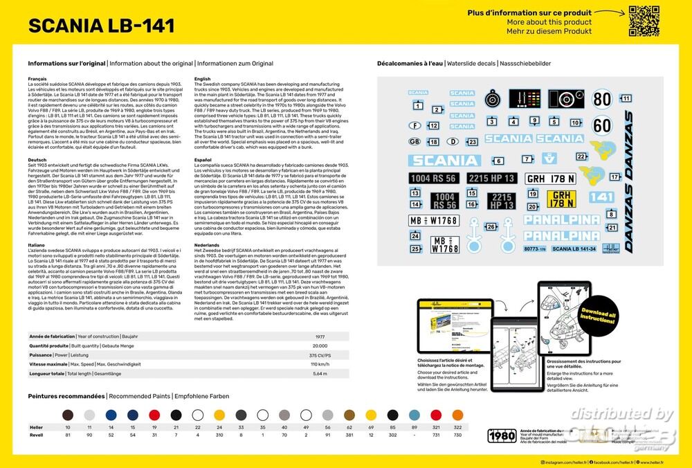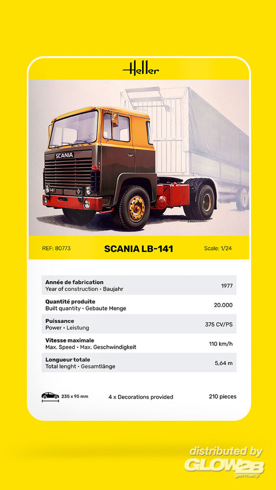Seit 1903 entwickelt und fertigt die schwedische Firma SCANIA LKWs. Fahrzeuge und Motoren werden im Hauptwerk in Södertälje entwickelt und hergestellt. Der Scania LB 141 stammt aus dem Jahr 1977 und wurde für den Straßentransport von Gütern über große Entfernungen hergestellt. In den 1970er bis 1980er Jahren wurde er schnell zu einer Berühmtheit auf der Straße, neben dem Schwerlast Lkw Volvo F88 / F89. Die von 1969 bis 1980 produzierte LB-Serie umfasste drei Fahrzeugtypen: LB 81, LB 111, LB 141. Diese Lkw etablierten sich schnell dank der Leistung von 375 PS aus Ihren V8 Motoren mit Turboladern und Getrieben mit einem breiten Anwendungsbereich. Die Lkw’s wurden auch in Brasilien, Argentinien, Niederlanden und im Irak gebaut. Die Zugmaschine Scania LB 141 war in Verbindung mit einem Sattelauflieger in aller Herren Länder unterwegs. Es wurde besonderer Wert auf eine geräumige, gut beleuchtete und bequeme Fahrerkabine gelegt, die mit einer Liege ausgerüstet war.