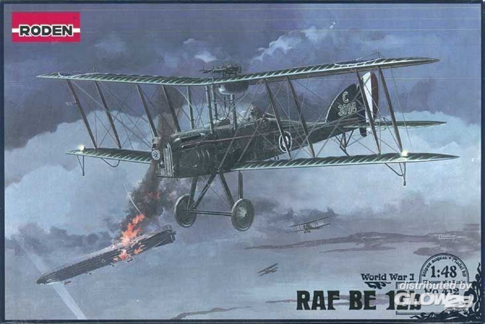Mit feinen Oberflächendetails wie der Stoffbespannung, sowie Cockpitdarstellung, Bombenlast, Folien für Fenster, einer Zeichnung zur Verspannung des Modells und Decals für 3 Markierungen: Kennz. C 3094, A Flight des No. 76 Sqn. 1918, C 3152, No. 141(HD) Sqn, Biggin Hill 1918, C3114, No. 75(HD) Sqn. Gosport 1918. Die BE12b war eine