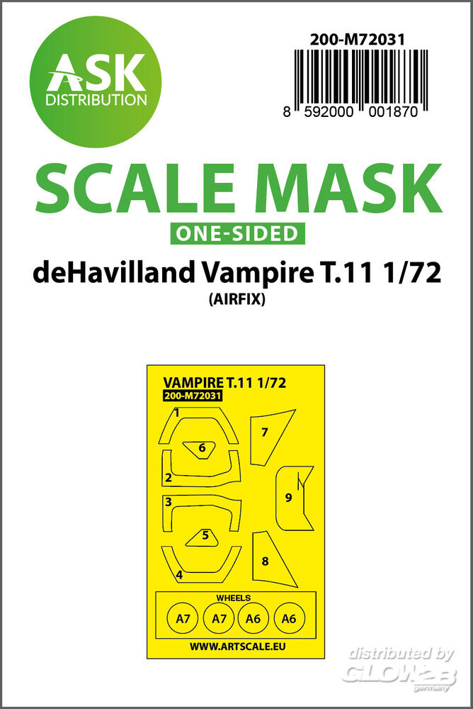 Art Scale Kit: deHavilland Vampire T.11 one-sided painting mask for Airfix in 1:72 [2000001870]