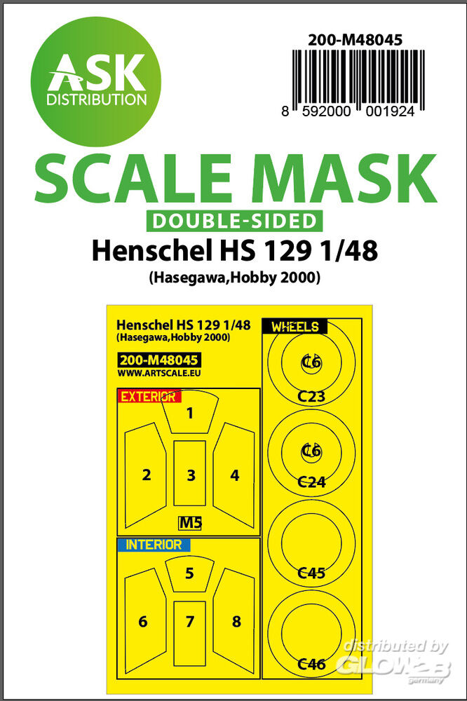 Art Scale Kit: Henschel Hs 129 double-sided painting mask for Hasegawa / Hobby2000 in 1:48 [2000001924]