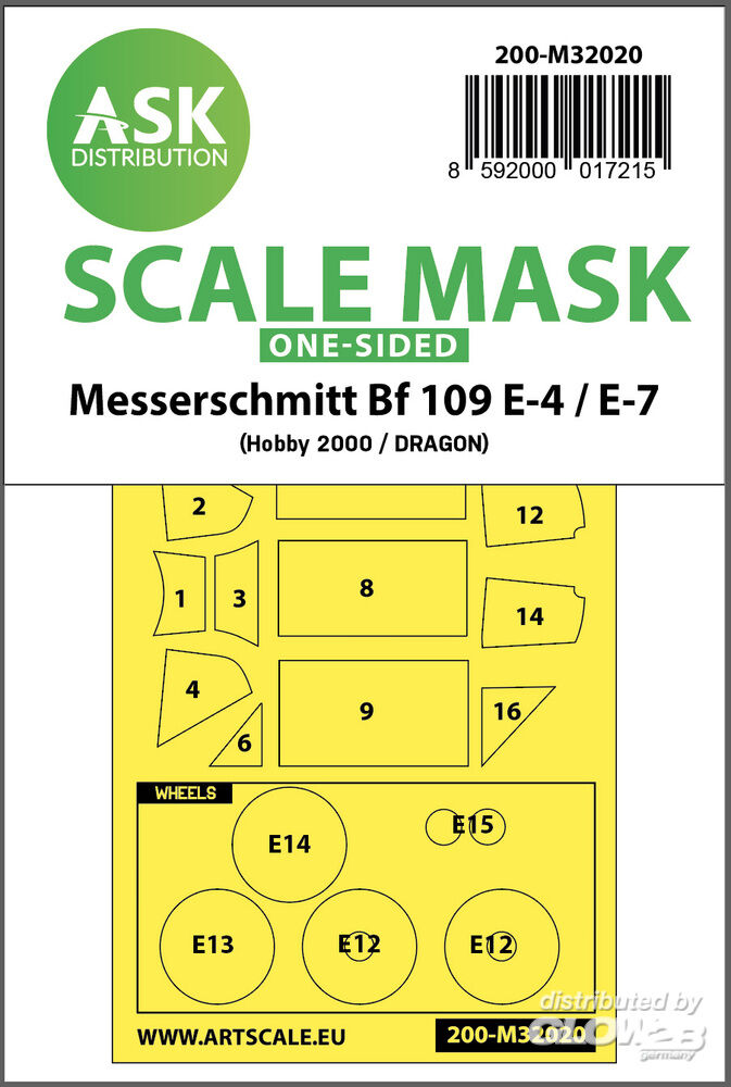 Art Scale Kit: Messerschmitt Bf 109E-4 & E-7 one-sided express masks for Hobby2000 / Dragon / HGW in 1:32 [2000017215]