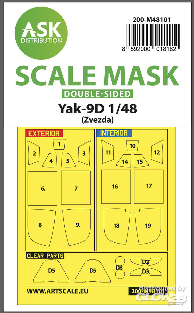 Art Scale Kit: Yak-9D double-sided express mask, self-adhesive, pre-cutted for Zvezda in 1:48 [2000018182]