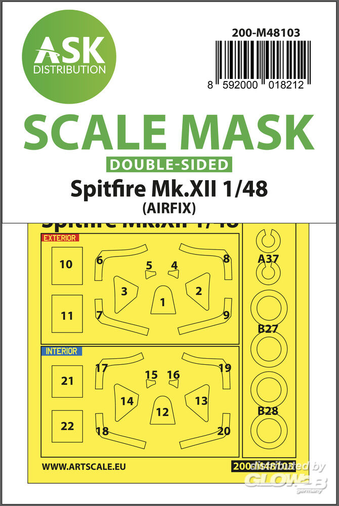 Art Scale Kit: Spitfire Mk.XII double-sided mask self-adhesive, pre-cutted for Airfix in 1:48 [2000018212]