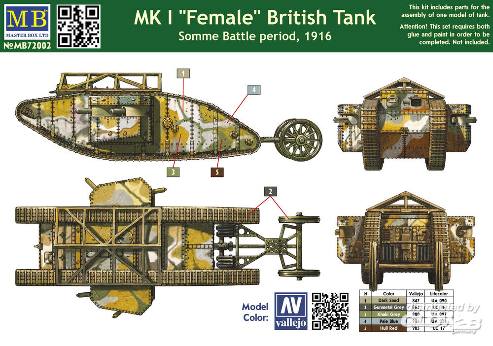 Master Box Ltd.: Mk I"Female"British tank,Somme battle 1916 in 1:72 [2337002]