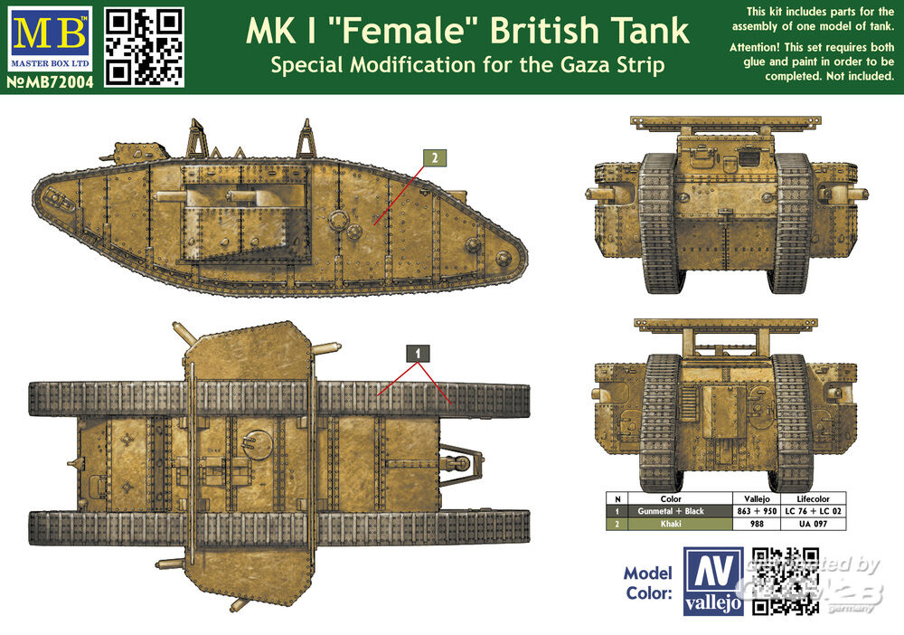 Master Box Ltd.: Mk I Female British tank,Specila modific in 1:72 [2337004]