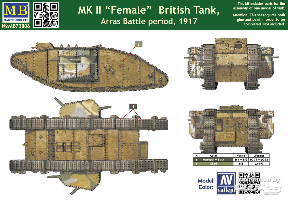 Master Box Ltd.: Mk II Female British tank.Arras Battle in 1:72 [2337006]