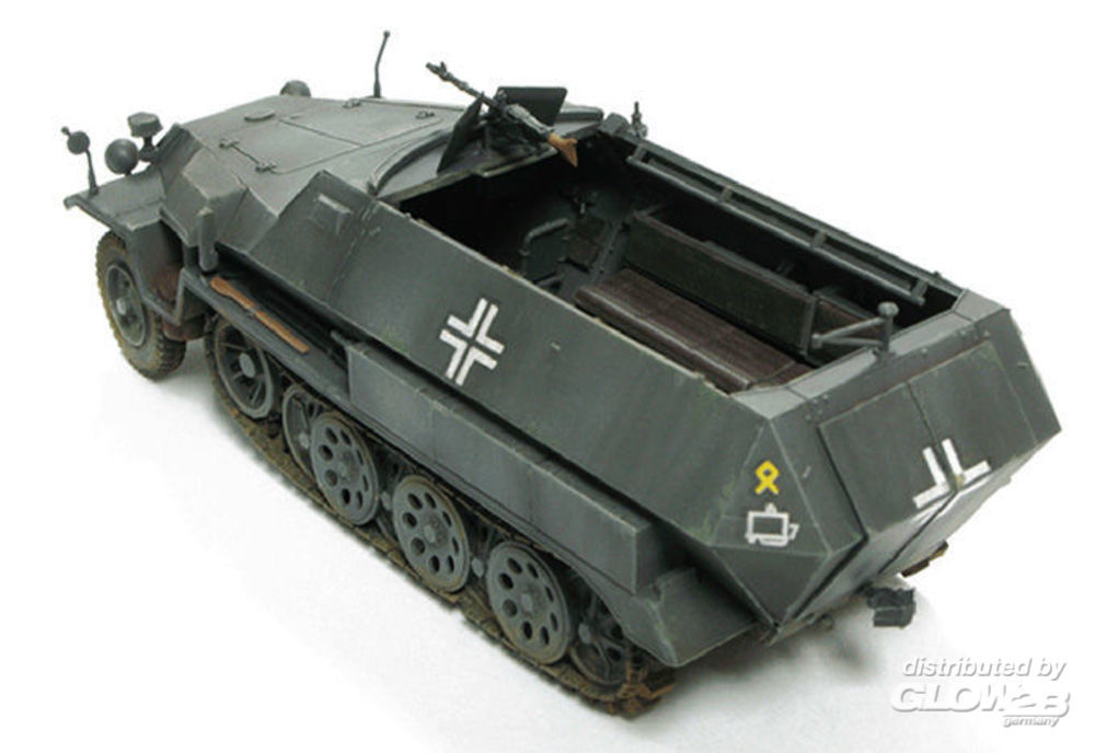 Detaillierter Modellbausatz mit Gummiketten. Wahlweise baubar in 5 Markierungsvarianten: Pz.Gren.Div. G.D, Russland, 1943, 3. Pz.Div., Kursk Operation Citadel, Sommer 1943, 16. Pz.Div., Russland, 1943/44, 14. Pz.Div., Ukraine, 1942, 21. Pz.Div., Libya, 1942.