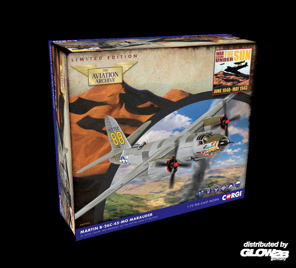 Corgi: Martin B-26C-45-MO Marauder, 42-107752 / BN 88 ‘Miss Arkansas’, Flown by Lt Leo A Lampman, 444th Bombardment Squadron , 320th Bombardment Group, USAAF 12th Air Force, Decimomannu Airfield, Sardinia, Summer 1944 in 1:72 [3129044114]