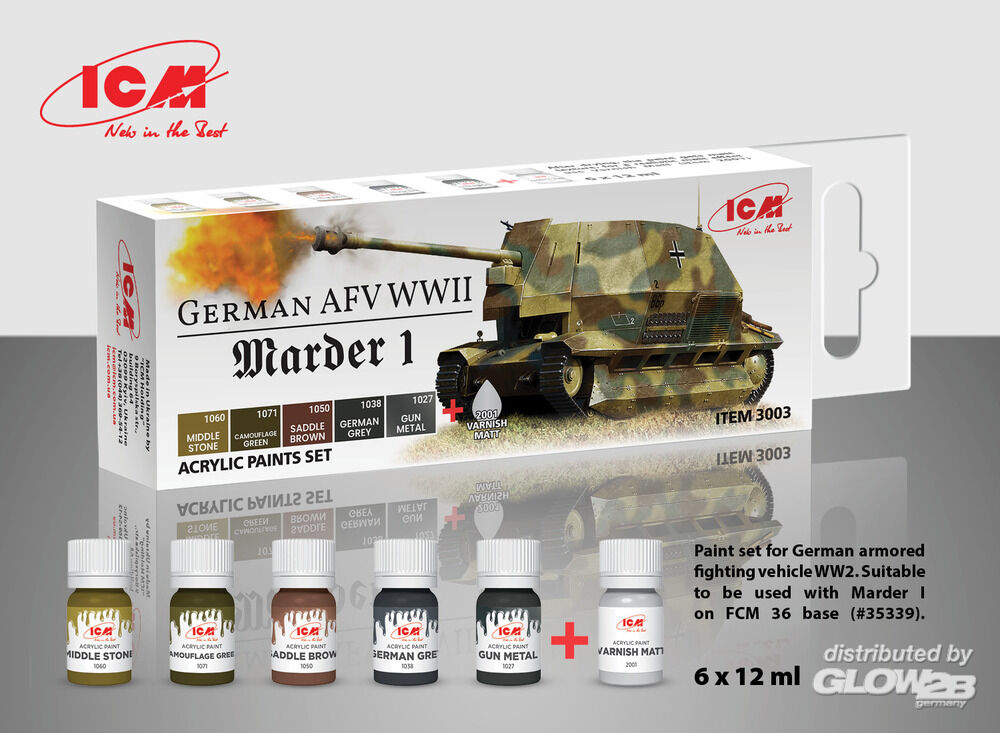 ICM: Acrylic paint set for German AFV WW2 (Marder I) 6 x12 ml [3303003]