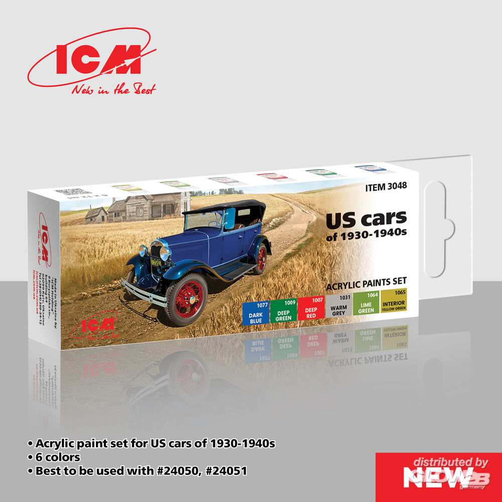 ICM: Acrylic paint set for US cars of 1930-1940s 6 x 12 ml [3303048]