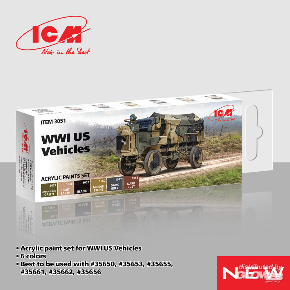 ICM: Acrylic Paint Set for WWI US military vehicles 6 x12 ml [3303051]