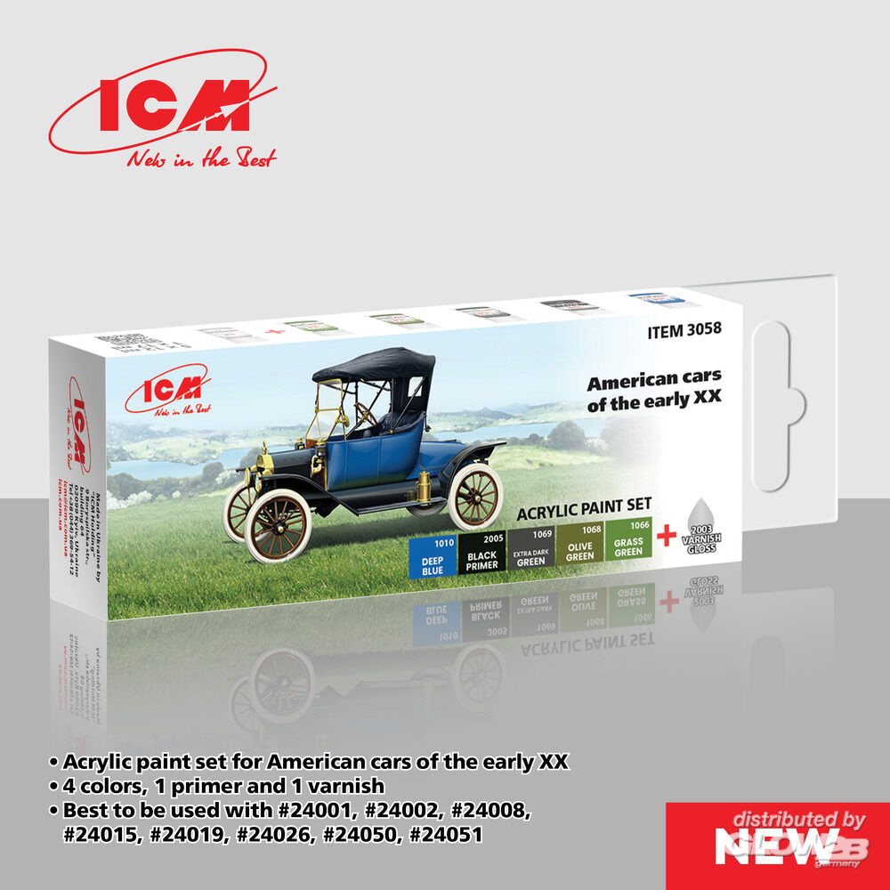 ICM: Acrylic Paint Set for American cars of the early ?? 6 x12 ml [3303058]