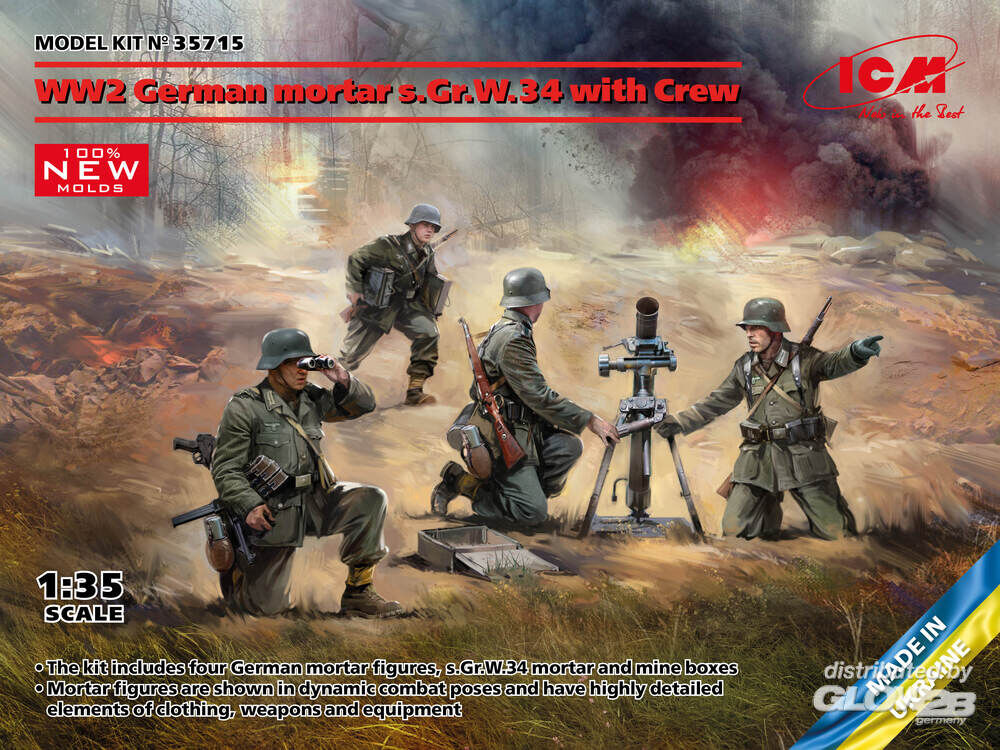 ICM: WW2 German mortar GrW 34 w.Crew (mortar a.4 figures)(100% new molds) in 1:35 [3315715]