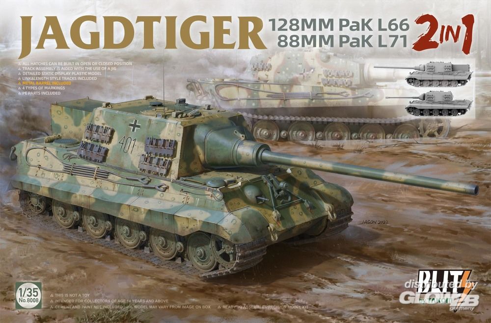 Takom: JAGDTIGER (2in1) 128MM Pak L66, 88MM Pak L71 in 1:35 [3468008]