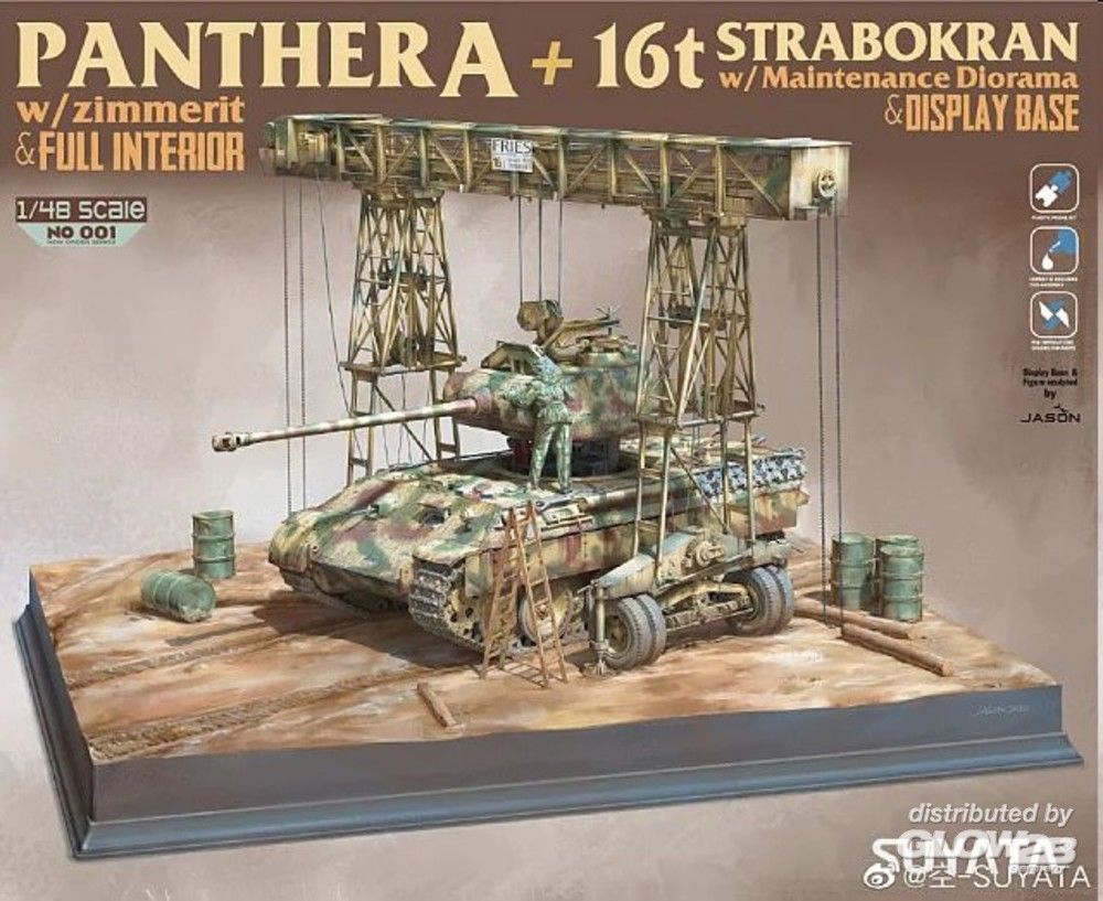 SUYATA: PANTHER A W/ZIMMERIT +16T STRABOKRAN W/MAINTENANCE DIORAMA in 1:48 [3470001]