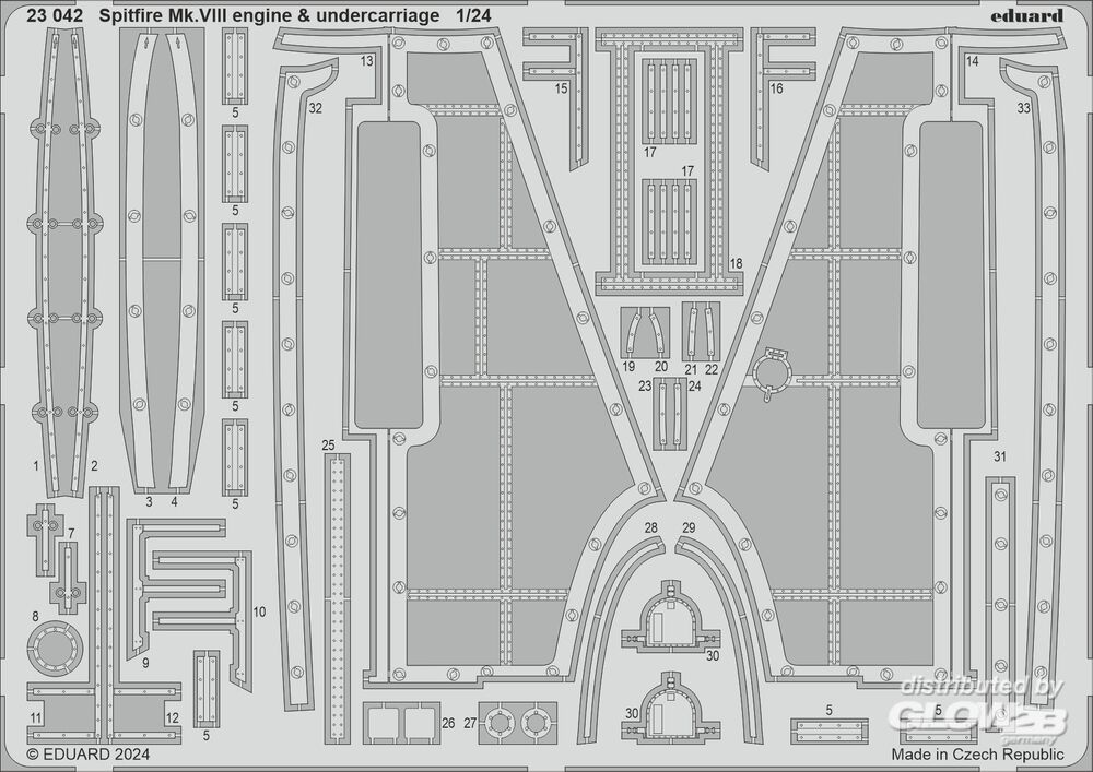 Eduard Accessories: Spitfire Mk.VIII engine & undercarriage AIRFIX in 1:24 [3923042]