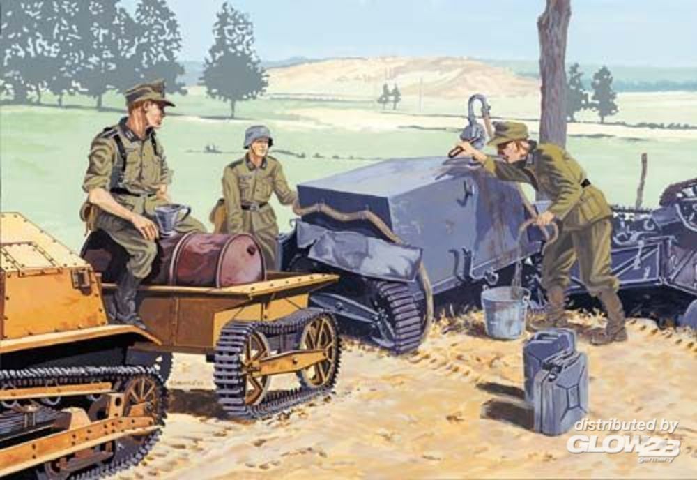 Mit Gummiketten. Wahlweise als Tank oder Transportanhänger mit Fass baubar.